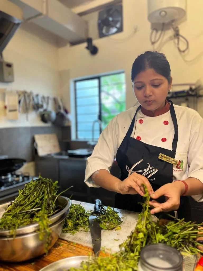 Chef Kashmiri Nath blends classical recipes with modern technique, using wild herbs like Manimuni (Asiatic pennywort) and Dhekia fern, along with staple ingredients such as outenga (elephant apple), thekera (Garcinia), and jaggery. The result was a menu that felt both true and new.