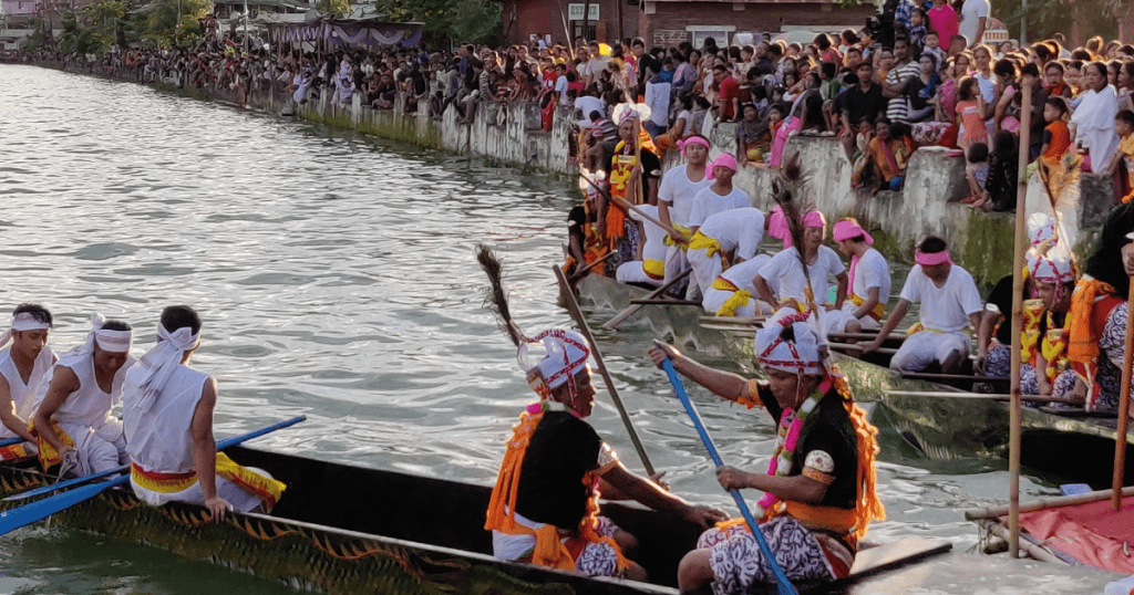 The boats are drawn ashore, their hulls still glistening with water and faith. The men who rowed them stand quietly now, their oars resting beside them. Around them, children laugh, elders exchange stories, and the air feels alive with something invisible: the pulse of tradition, the warmth of belonging.