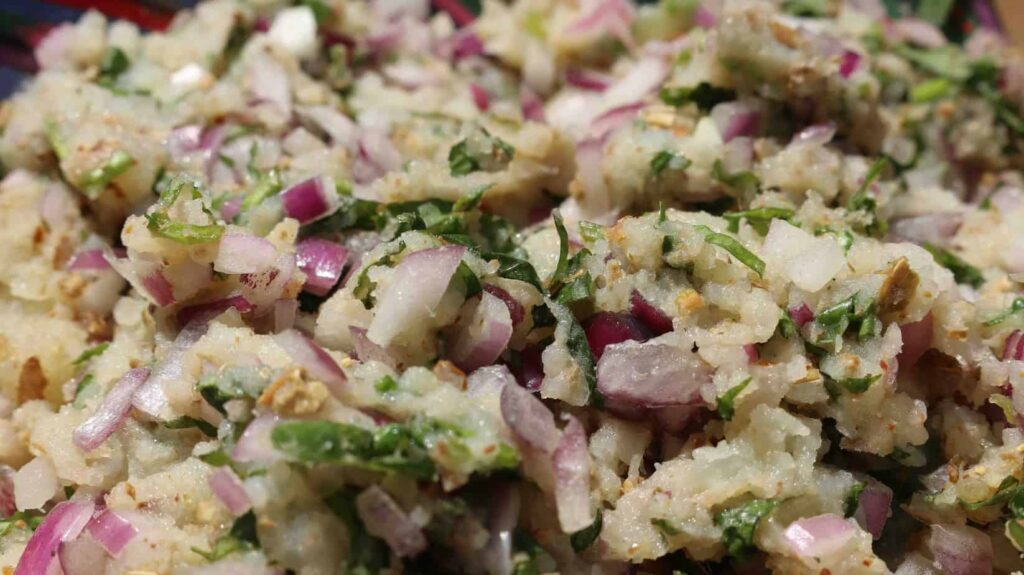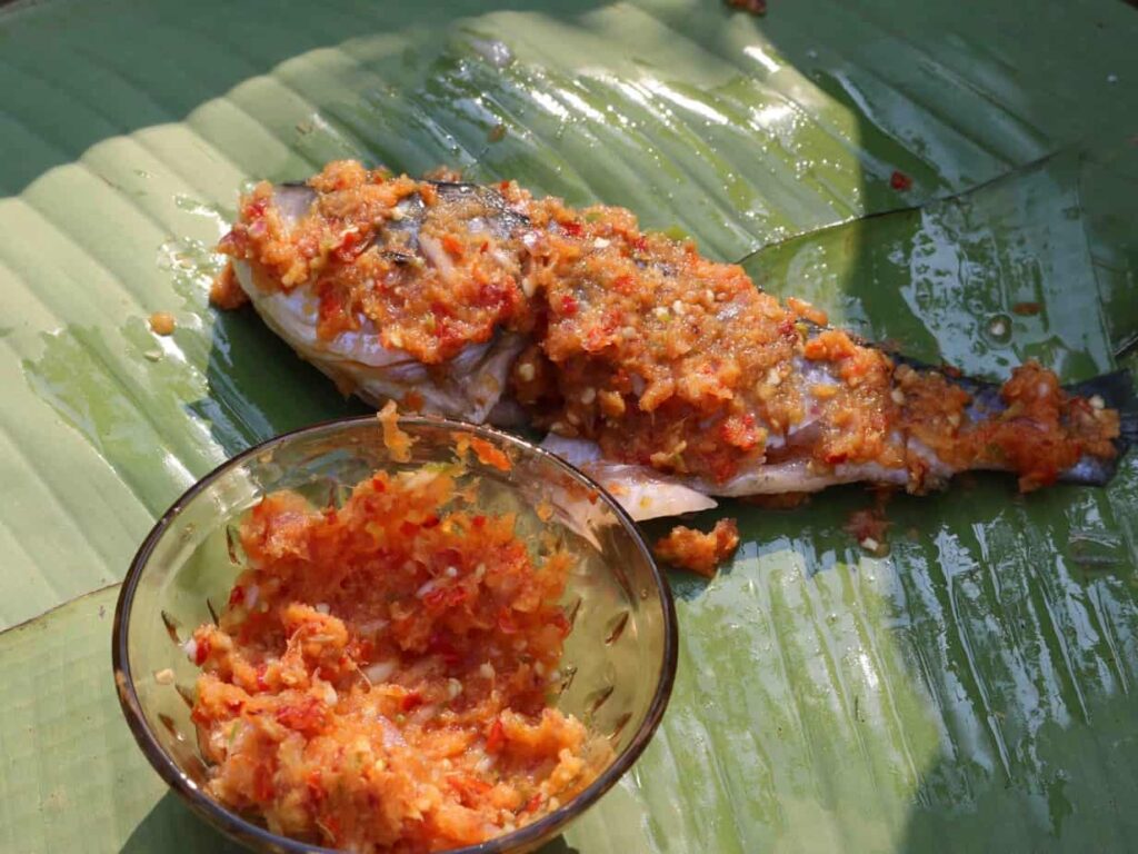 A marinade of pounded onion, garlic, ginger and green chillies is applied to the cut and cleaned fish and wrapped in layers of banana leaf and left to cook over a charcoal fire or a pan at low flame.