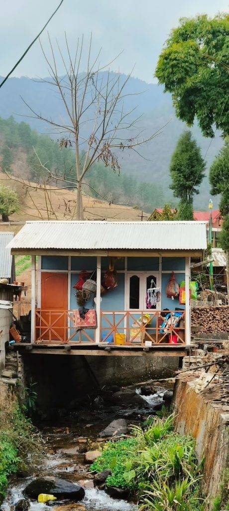 Once walking into Sangti Valley the houses felt like characters in a slow, breathing story. Each two‑storey home sat rooted in the slope, its base hewn from rough river stone that smelled faintly of damp earth and moss, the kind of stone that takes years to settle and knows the sound of winter. Above that, the upper floor was built from finer cut stone — a warm ochre that deepened with sun and age until walls looked as if painted by the seasons themselves. The walls were nearly a foot and a half thick, solid and reassuring, sealing in warmth during the cutting Himalayan nights.