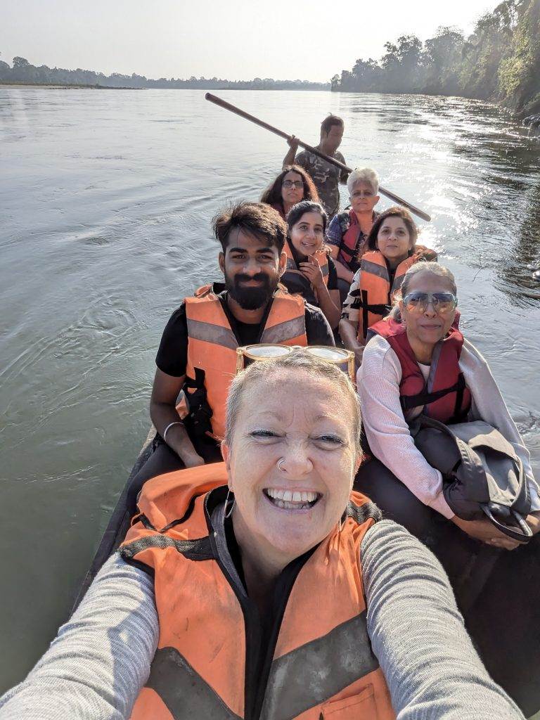 The highlight of the day was undoubtedly our river float on the Jia Bhoroli. As we drifted along the crystal-clear waters, sparkling with mica, the snow-capped Himalayas provided a majestic backdrop. The experience was meditation in motion – feet dangling in the cool water, surrounded by nothing but the sounds of nature. Our peaceful drift was punctuated by wildlife sightings, including a lone male elephant along the riverbank and various bird species soaring overhead.’